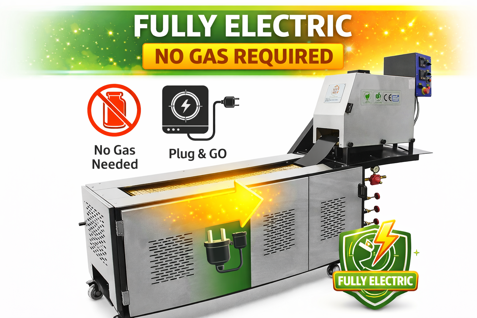 | High Quality Branded Gas Fittings | Provided – Considering Long Life Of The Machine & Safety Precautions We Always Use Such Gas Fittings. | Not Provided – Lower Quality Gas Fittings Are Not Safe & Poor Running Life |